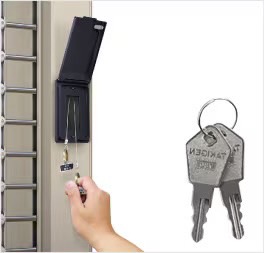 シャッター本体正面中央部に、ディンプル錠が付きます。外部からはディンプル錠で施解錠します。内部からはツマミで施解錠します。