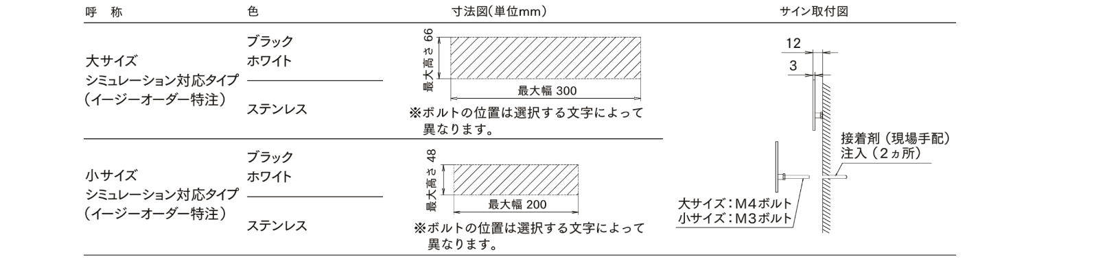 ※文字列の最大幅寸法は、大サイズは300mmまで、小サイズは200mmまでになります。