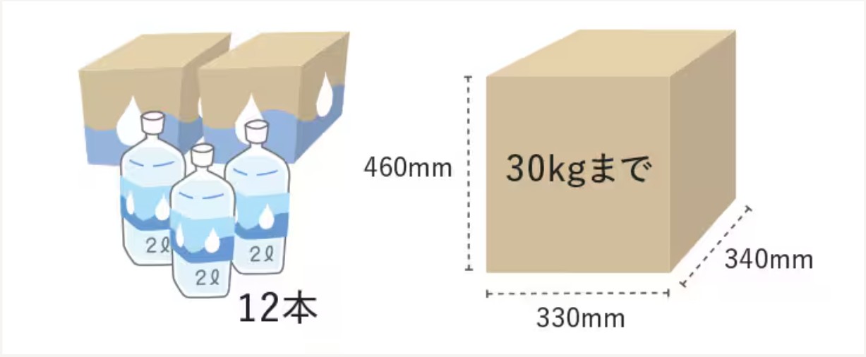 2リットルペットボトル6本入りが2ケース収納可能なサイズです。