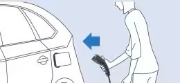 3.巻き付けてある充電ケーブルを取り外したら、充電用コネクタを車の充電口に差し込む。 ※1