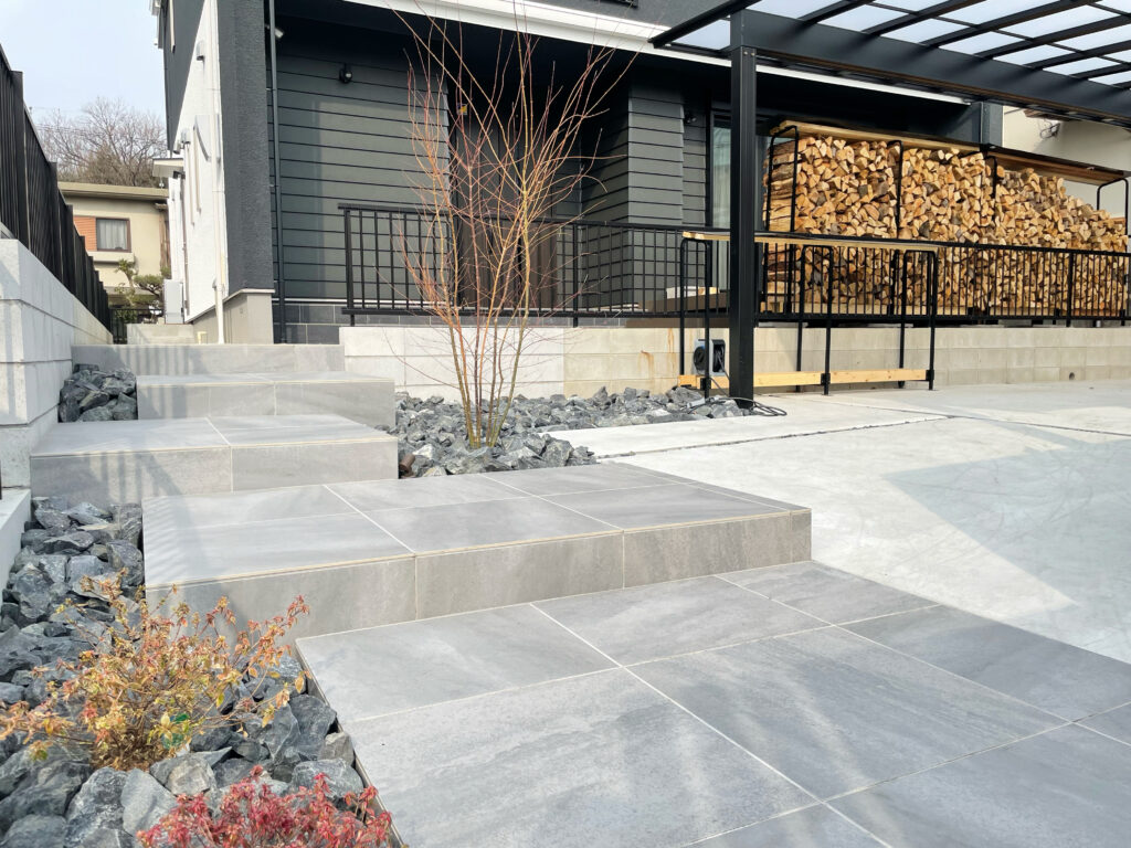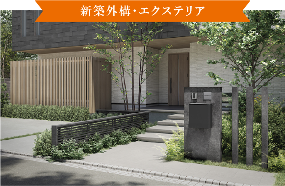 新築外構工事 住宅・アパート・マンション・店舗等の外構・ガーデン工事 リフォーム・リノベーション工事門まわり ファサード エントランス 門扉 アプローチ 階段 車庫まわり 駐車場 自転車置場庭まわり テラス プール ジャグジー 植栽 坪庭 花壇 勝手口 犬走り 隣地境界