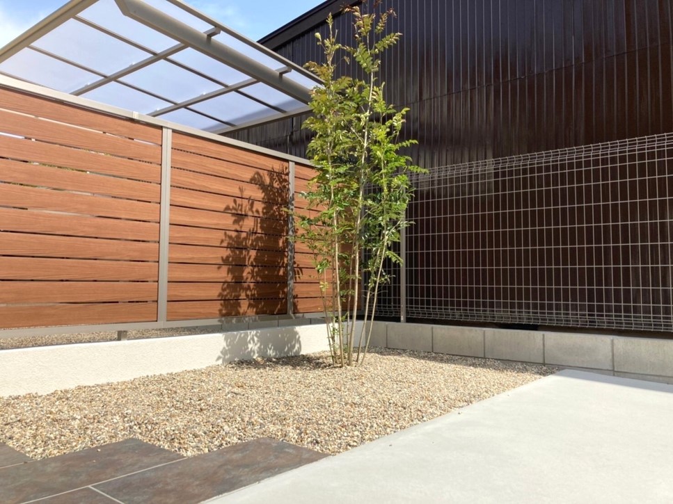 年月とともに風合いが変化し、“経年美化”を楽しめる素材”です。一方で、紫外線や雨の影響を受けやすいため、定期的な塗装や防腐処理が必要です。「手をかけながら育てる外構」を楽しみたい方におすすめです。