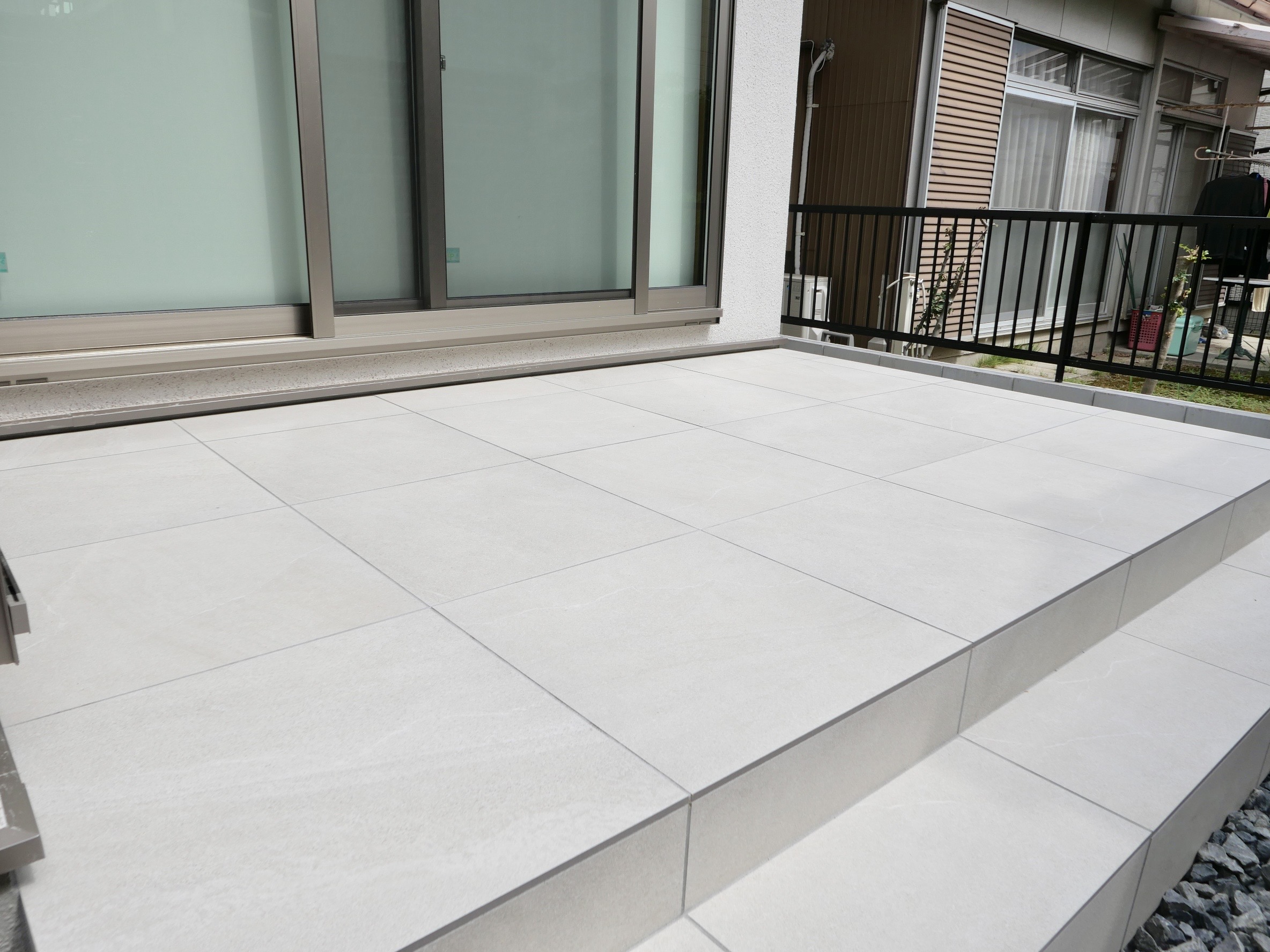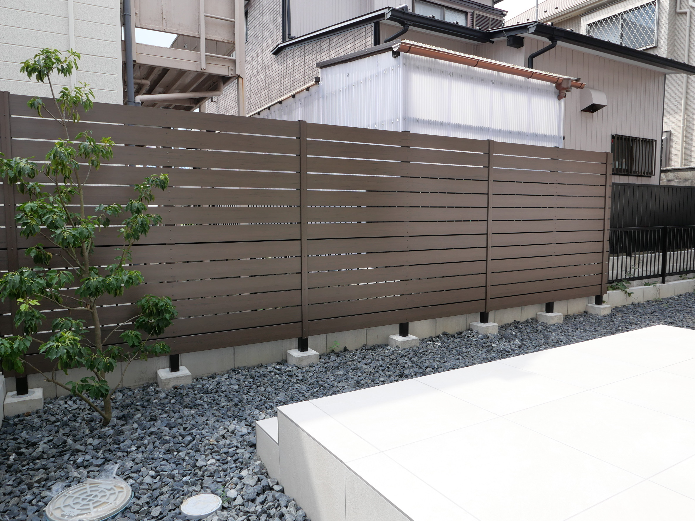 掃き出し窓からはそのまま出ることが出来るようタイルデッキと・目隠しフェンス〈アーバンフェンス〉を設置し隣地からの視線を気にせず快適に過ごしていただけます。