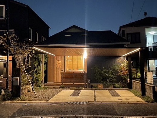 ラインライトをオプション設置しておりますので夜間もおしゃれにライティングされます◎