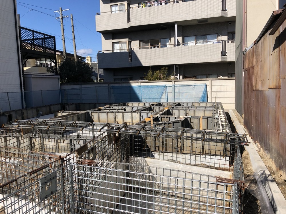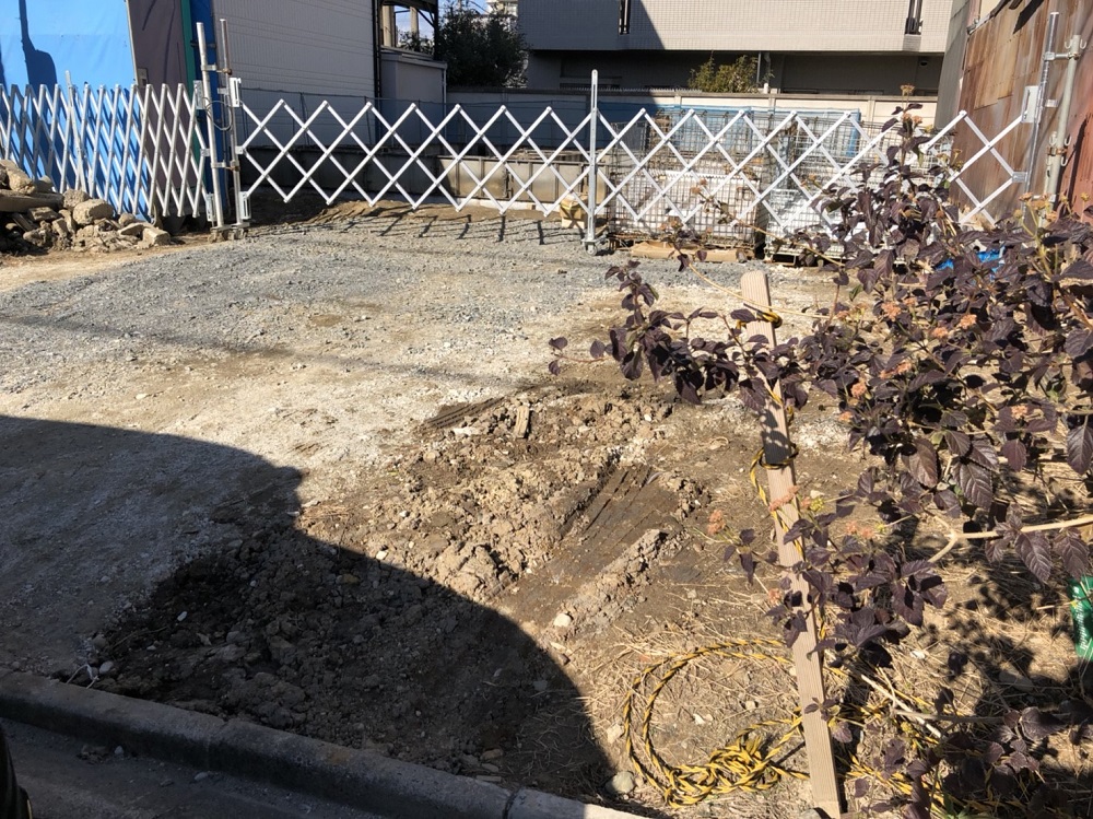 Y様邸は一次外構工事(造成工事)が終わり、家を建てるための基礎工事の段階です。
