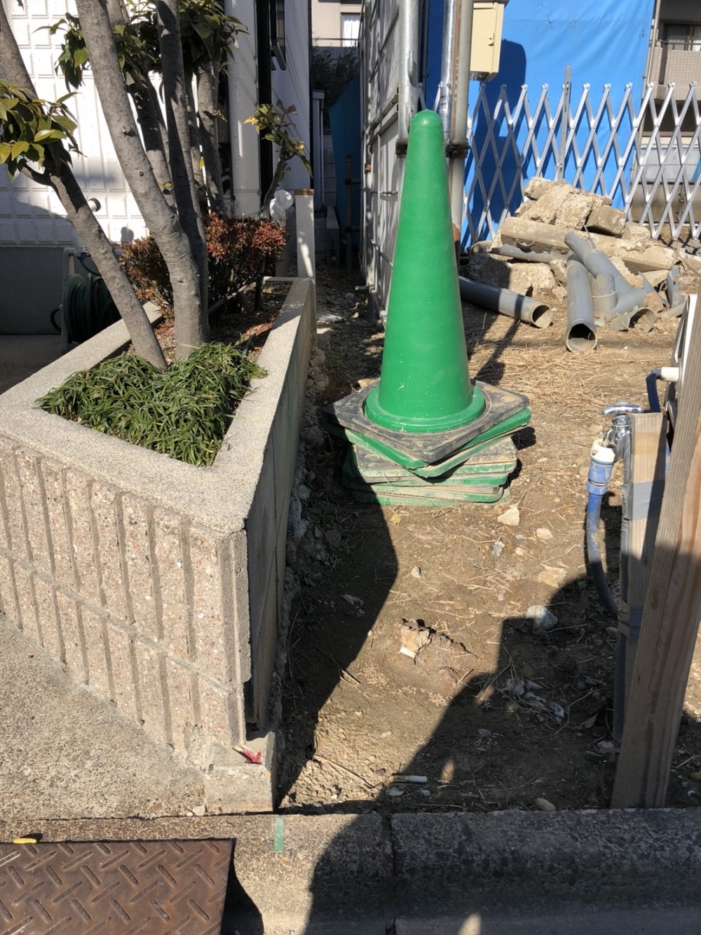 道路側にある水道は、工事の為に一時的に設置したものですので、家の建築のが完工した段階で撤去されます。