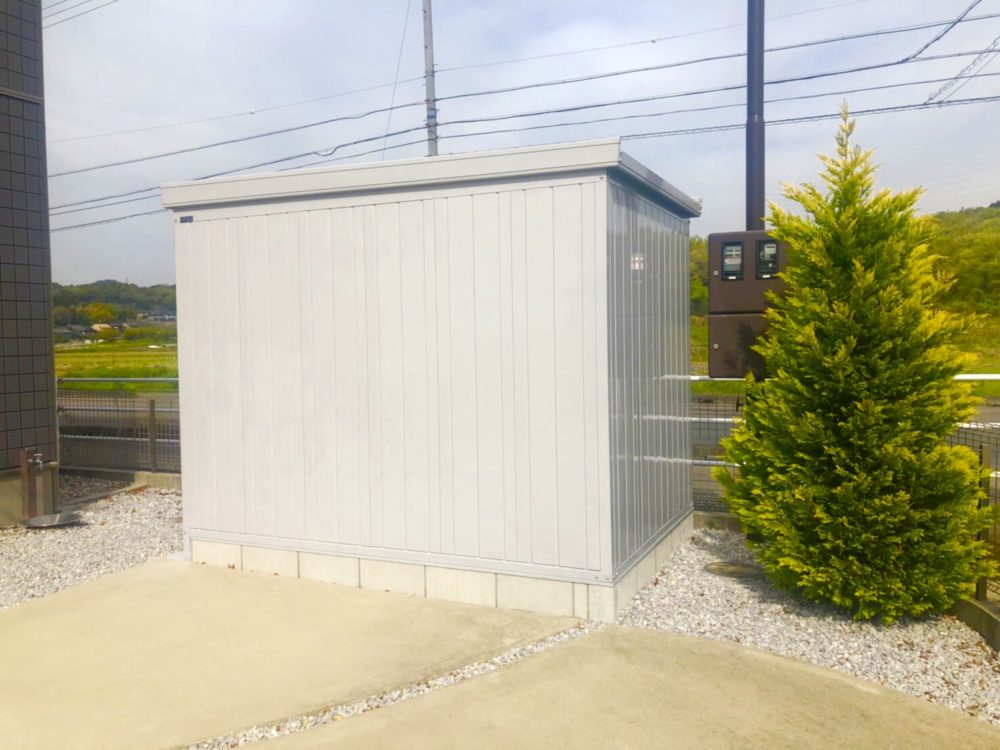 樹木を二つ撤去しイナバ物置ハイルーフ(UG)を採用。
