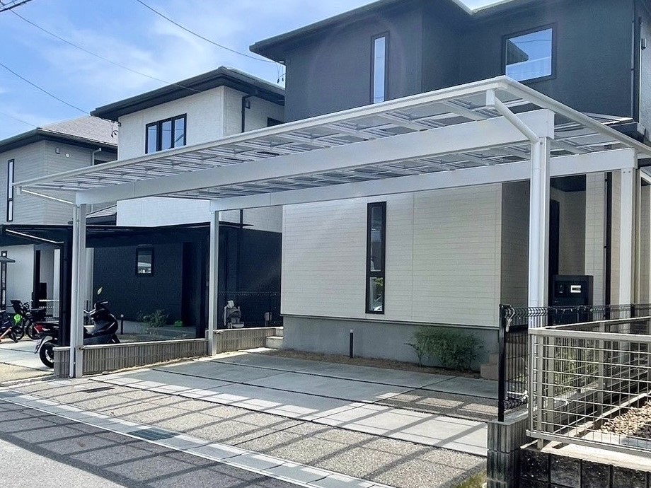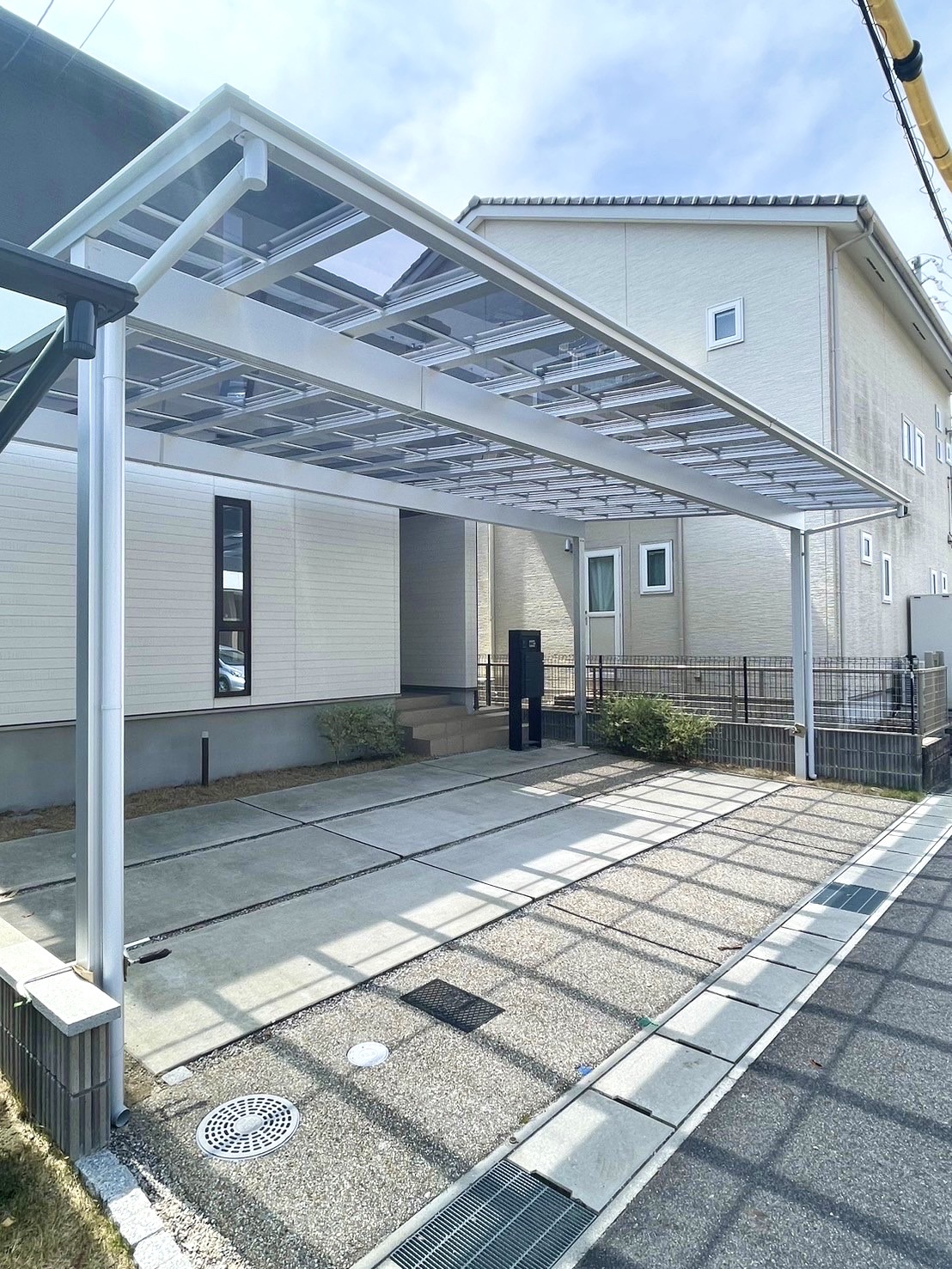 日進市・長久手市での施工事例が増えておりますので今後少しずつご紹介していこうと思います。先日に引き続き、ご近隣でカーポートの設置工事が完了しました!先日はアリュース3台用、今回はフーゴF3台用です✨ネスカと外観はに似ていますが耐風圧等が高く、3台用をラインナップしている点でフーゴをセレクトしています。パートナーホームへご依頼いただきまして誠にありがとうございました♪