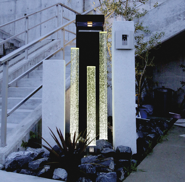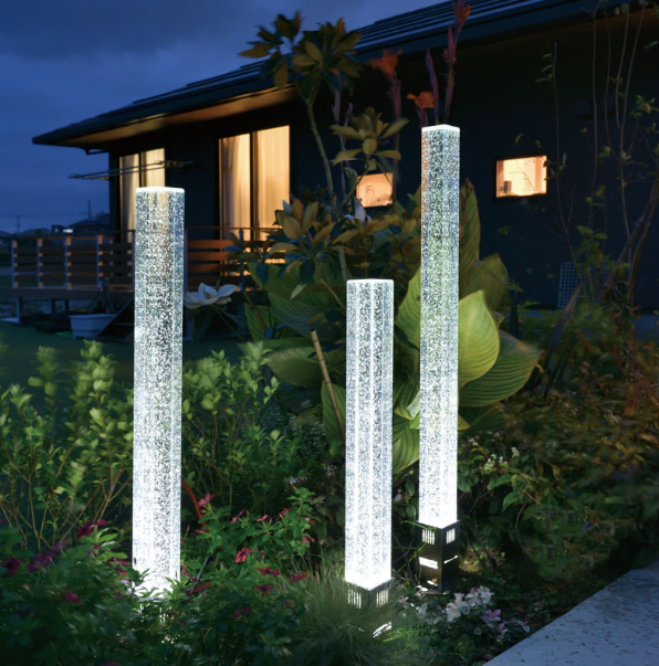 今回はお庭や門まわり等をコーディネートする商品の一つとしてオンリーワンのG.ロッドをご紹介します✨クリスタルガラスの柱と柱の中の泡を美しく照らすポール型ライトです。気泡入り高透過ガラスで幻想的なファザードを演出することができますよ◎