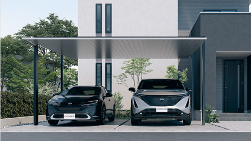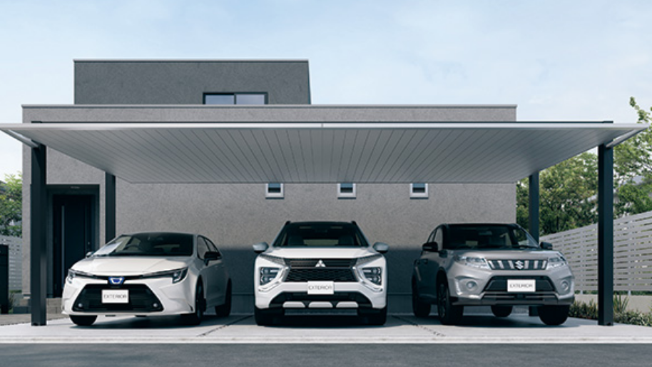 いよいよ来月より三協アルミのカーポートFⅡ2台用・3台用が発売されます✨様々なスタイルの外構に調和するシンプルでかっこいいカーポートデザイン。アルミ材の屋根が更にフラットとなり登場致します◎