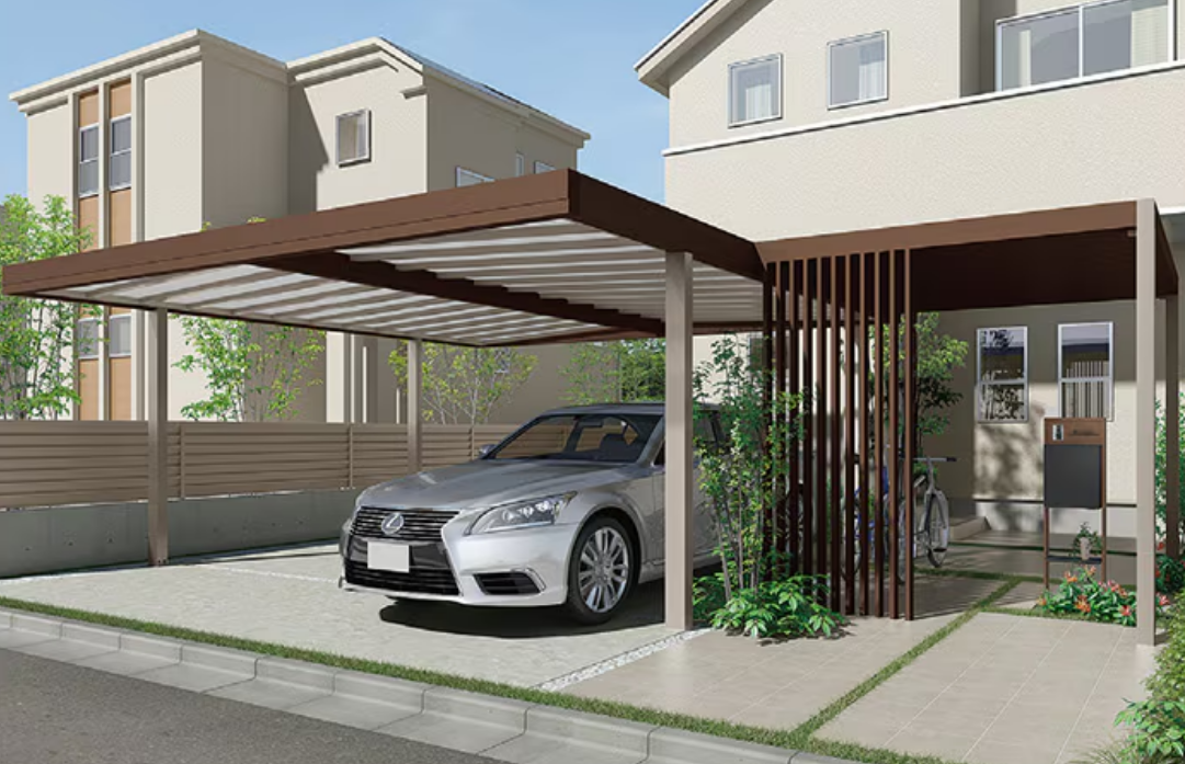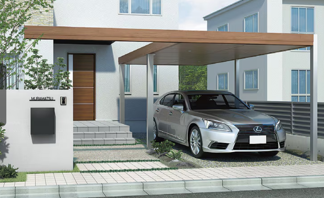 LIXILのプラスGシリーズの中でもGルーフというものがございます。ルーフとは屋根の事を差します💡駐車場のカーポートとしてや、アプローチラインの屋根として柱や屋根パネルの枚数を調整して敷地形状に合わせたコーディネートが可能です◎