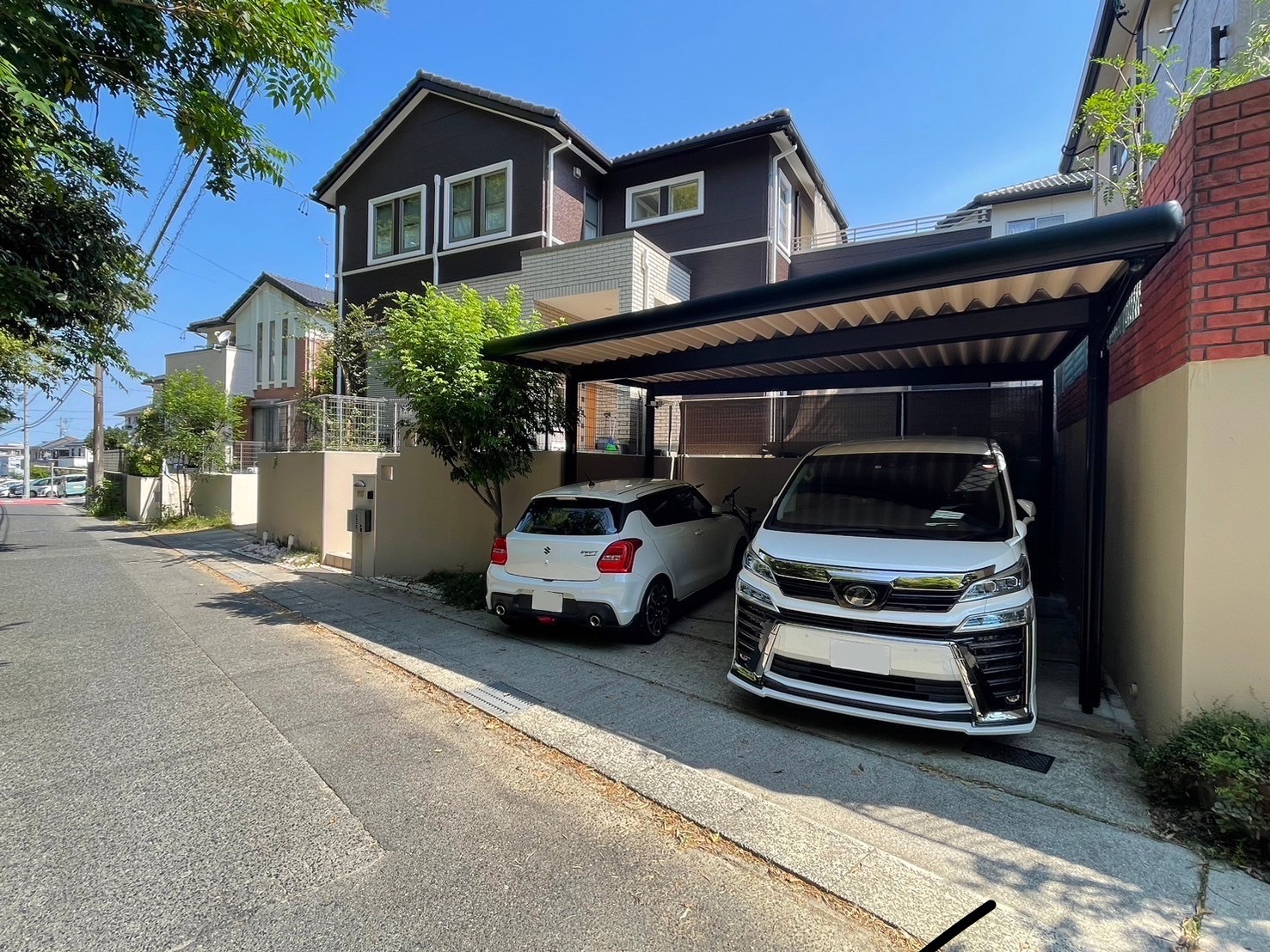 本日も無事カーポート設置工事が完了しました✨こちらは敷地が台形の形になっており、セッパンカーポートを斜めカットすることによってスペースに最大限収まるよう施工しております。既存のカーポートではなく敷地に合わせたサイズをオーダーメイド致しますので敷地形状に悩まれている方は是非参考にしてみてください♪
