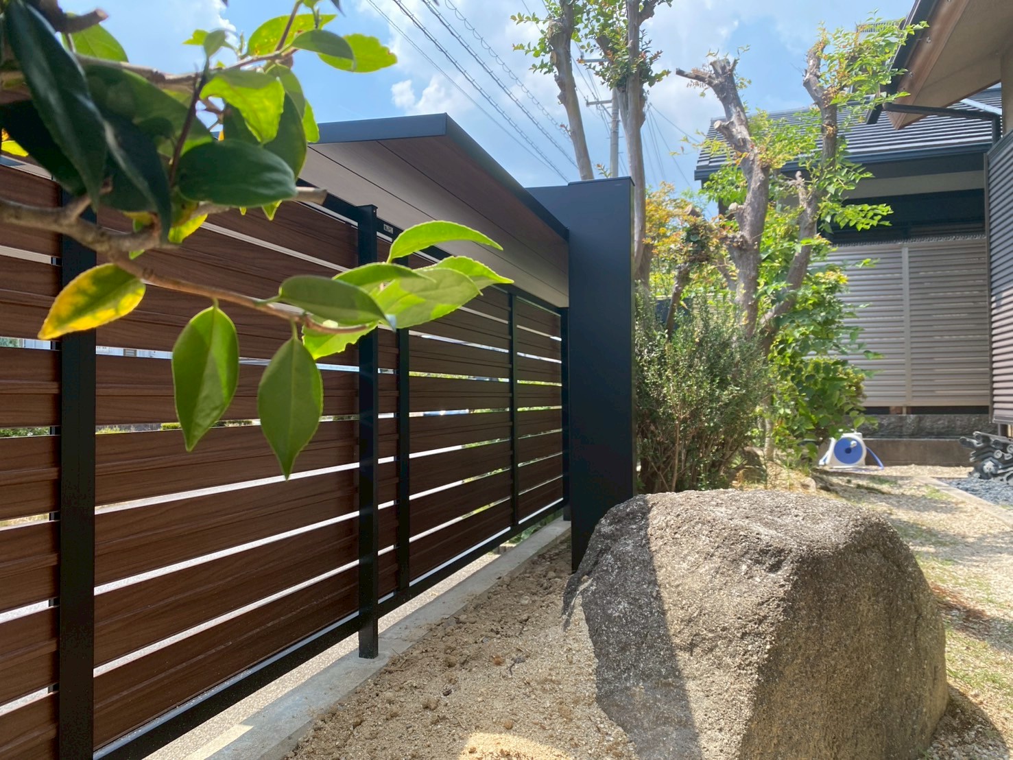 みなさまこんにちは、パートナーホームです☀今回目隠しフェンス+1台用カーポートの設置が完了しました◎