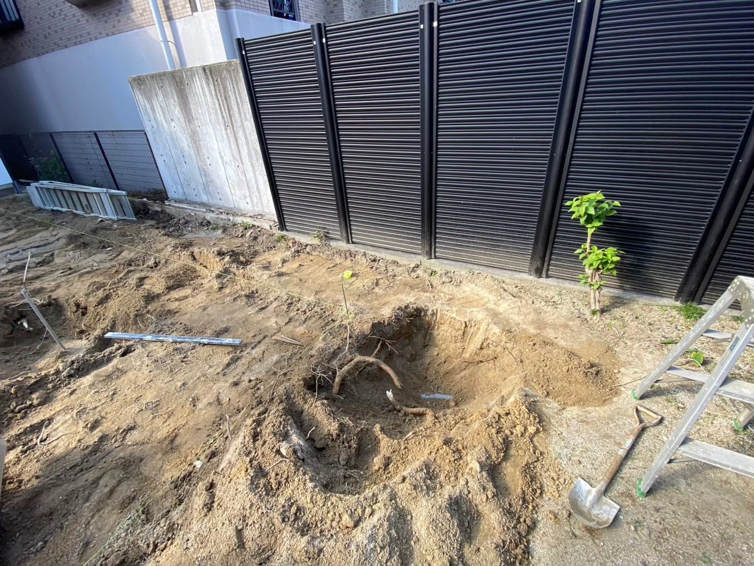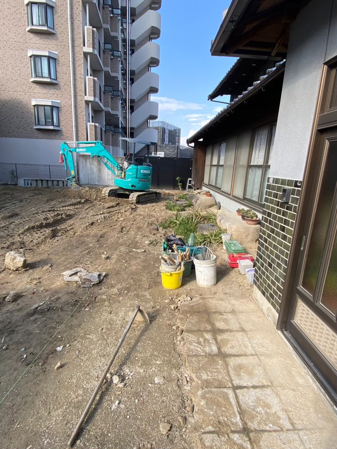 さて、名古屋市某様邸にて外構リフォームが始まりました。広いお庭の石や植栽を解体・撤去し、新たに門+シャッターゲートのあるクローズ外構に仕上げていきます。今よりも更に快適でメンテナンスフリーな外構に仕上がるよう完成を楽しみにしていただければと思います♪