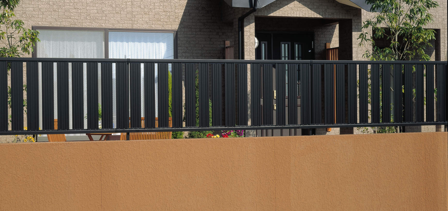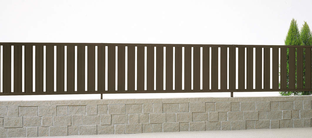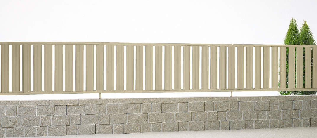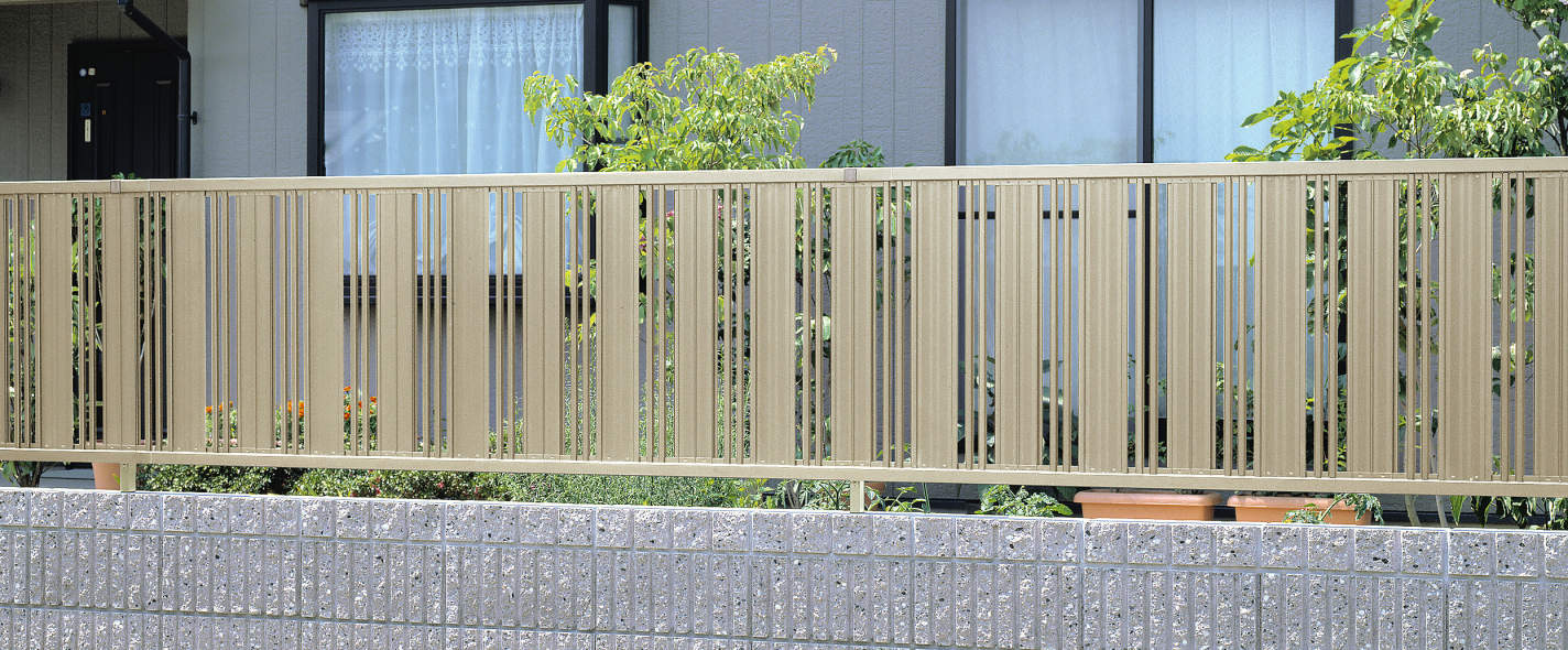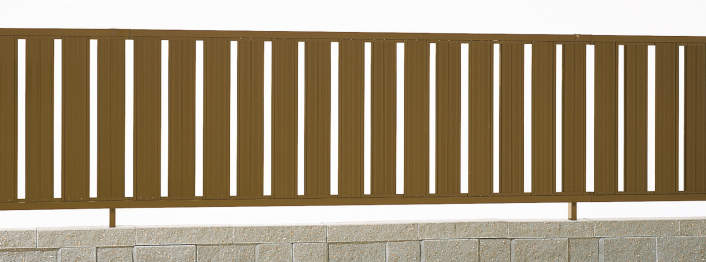 たて格子で、程良い目隠し効果と通風効果が得られる形材フェンスです。