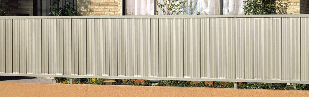 フェンス間に柱を設置するタイプのため、両面同じデザインで表裏が目立たず隣家との境界部の施工に適しています。