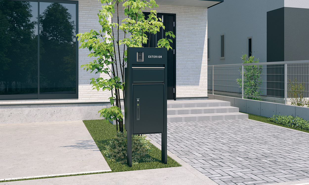 一般家庭へのメール便や宅配便に対応する機能ポール。シンプルなデザインで、お求めやすい価格のスタンダードタイプと意匠性をアップさせるサイドスクリーン付きタイプをラインアップ