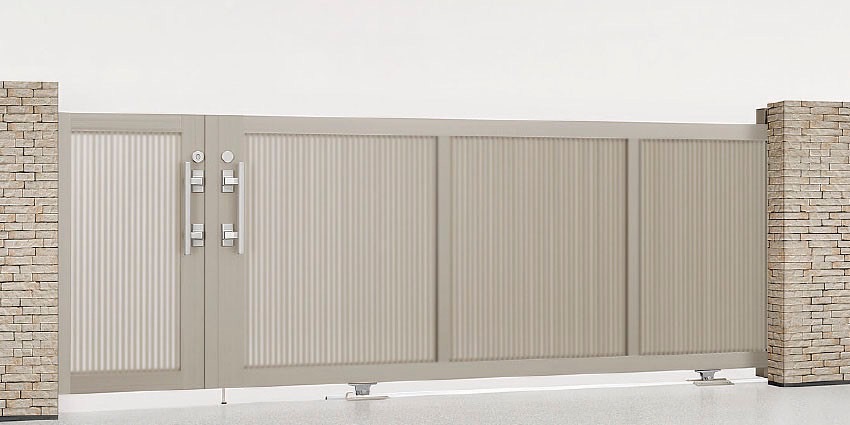 LIXIL カーゲート 引戸 門扉 外構 モダン  おしゃれ エクステリア 愛知・名古屋の外構専門店パートナーホームのエクステリア 製品一覧 エススライド エススライド A型 両引きタイプ シャイングレー 30-30-12|パートナーホーム