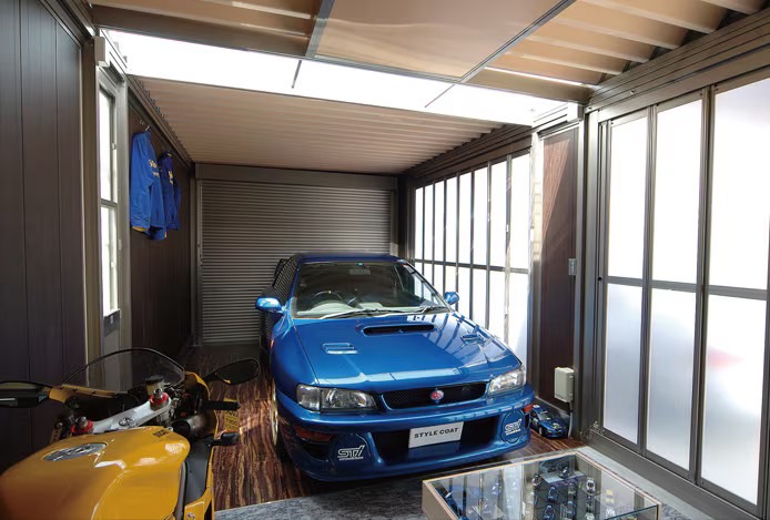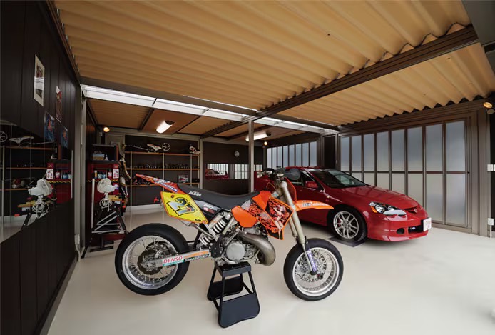 これまでのガレージのイメージを一新する開放感にあふれた趣味空間。
