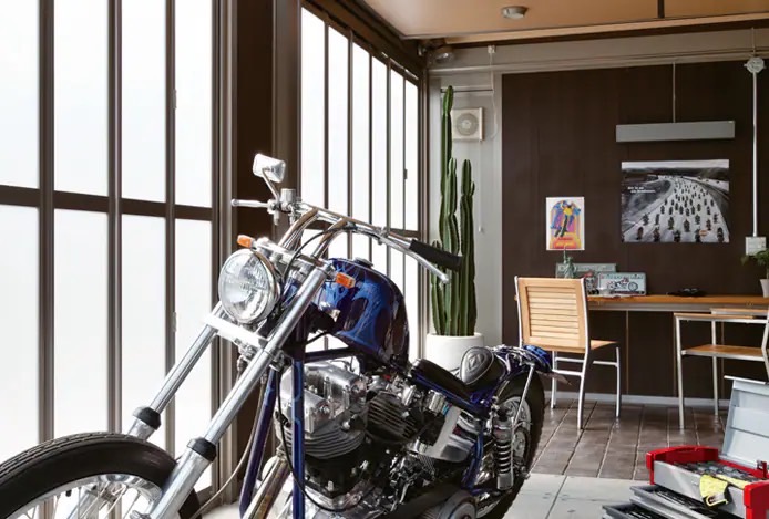 こだわりのバイクに相応しい、カスタムを愉しむガレージ空間。