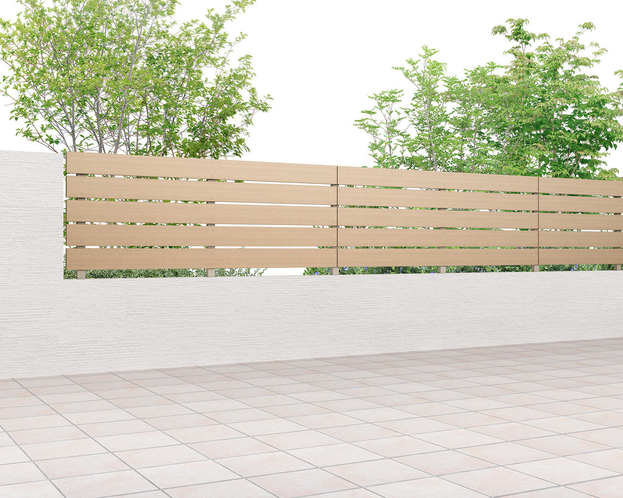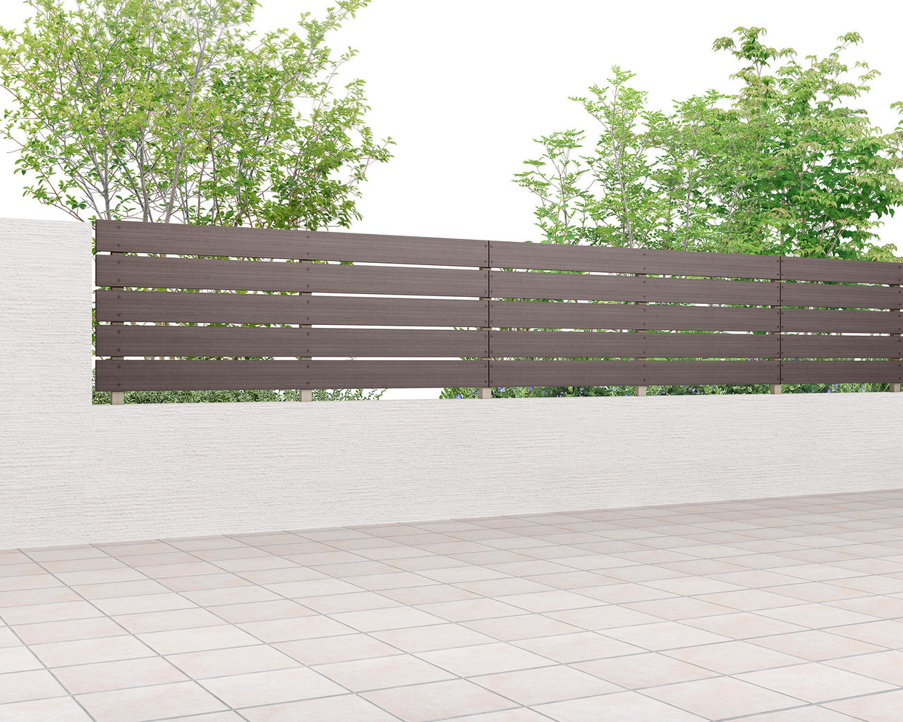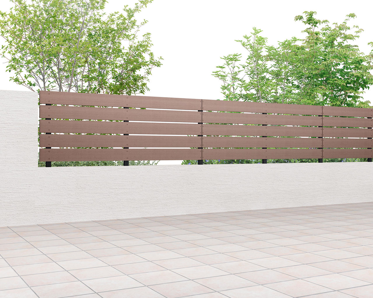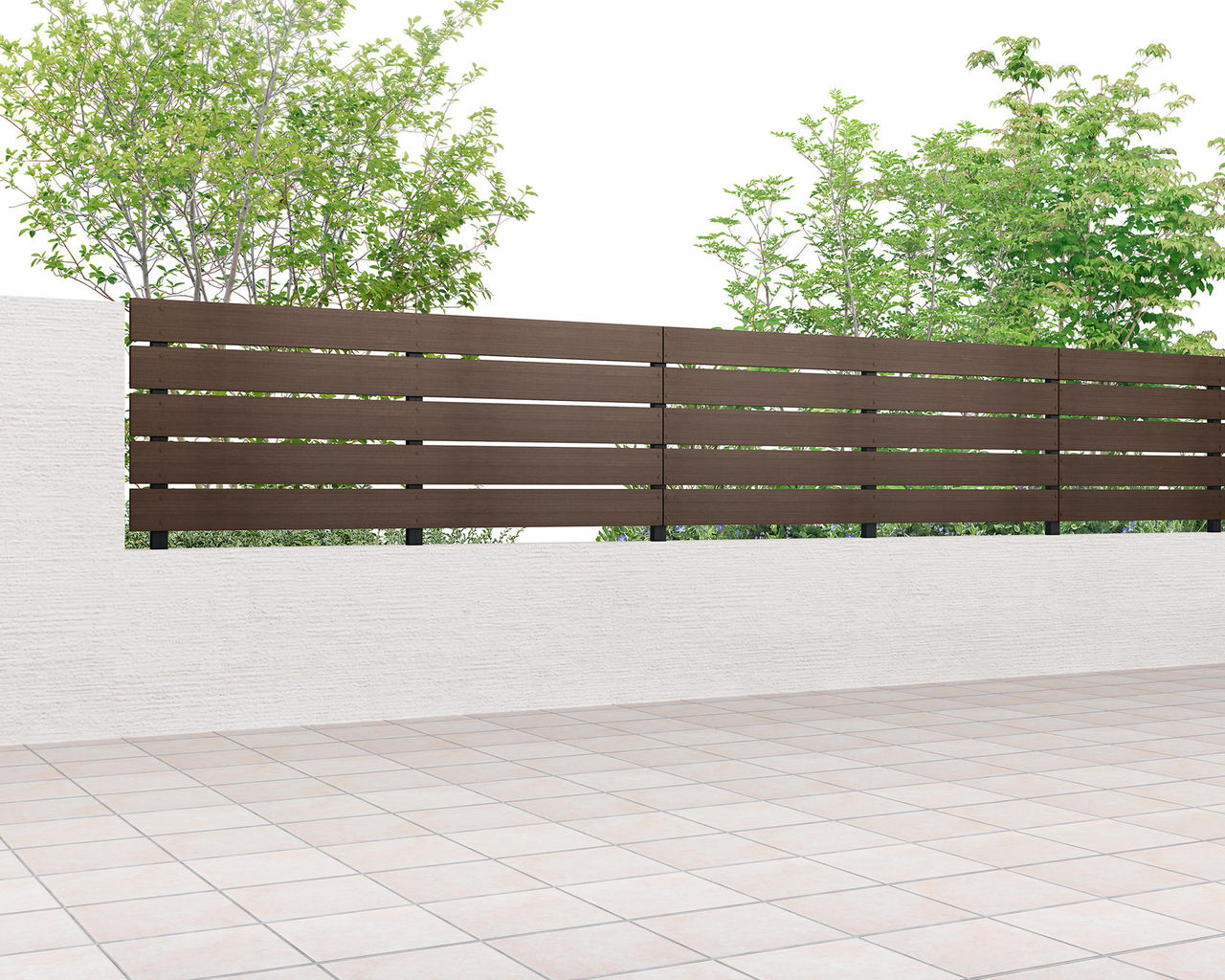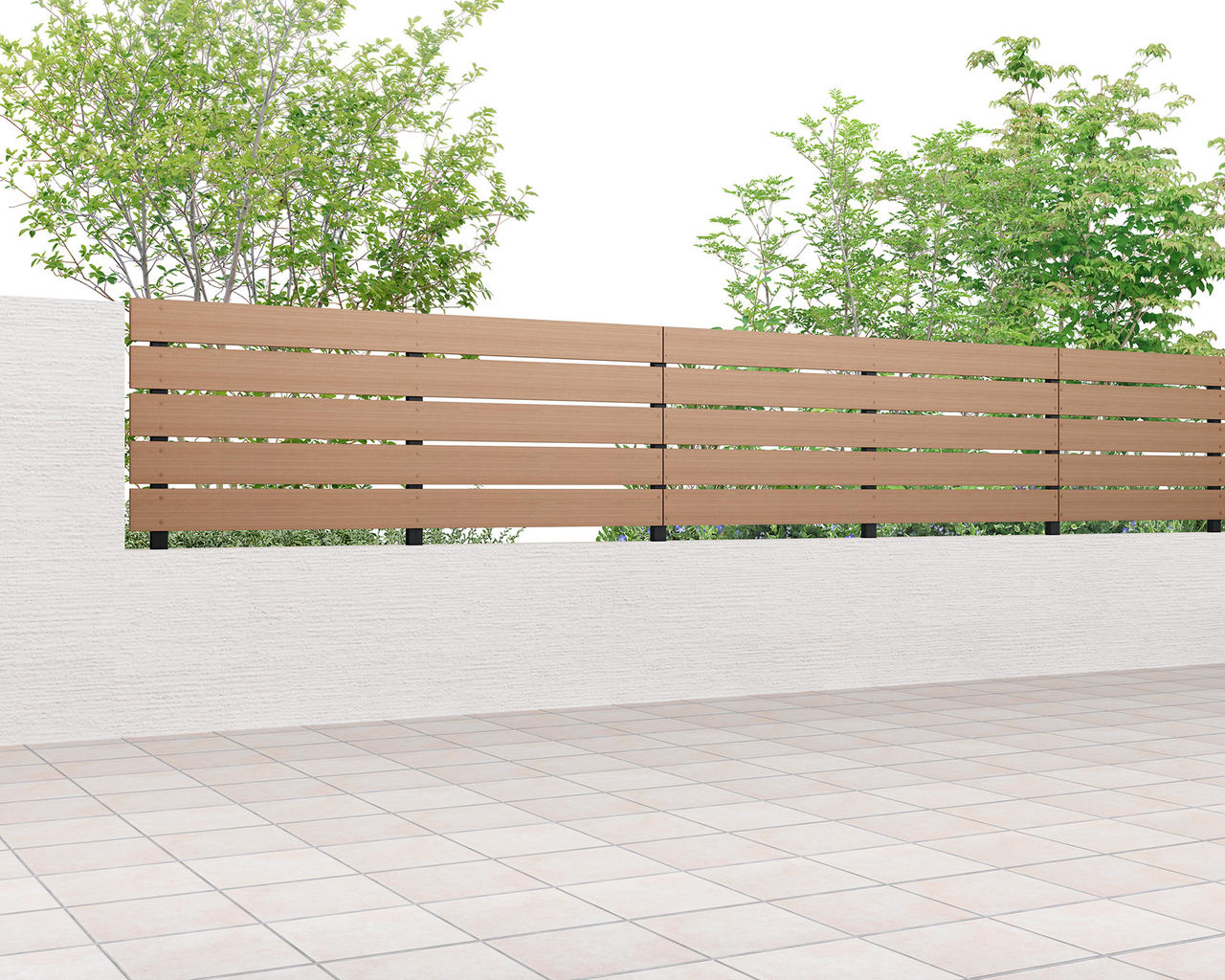 木目がまっすぐ流れる柾目調がナチュラルなフェンス空間を演出