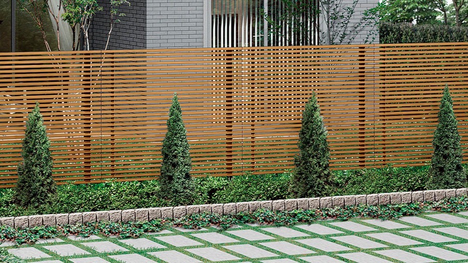 ゆとりの空間を多彩に表現する高尺ハイグレードフェンス。光と風を導きながら心地よい空間を創り、プライバシーやセキュリティといった機能性にも配慮しました。高尺ユニットを連続して組めるフリーポールタイプと、ウォールの表情にアクセントを添える間仕切りタイプを用意しました。