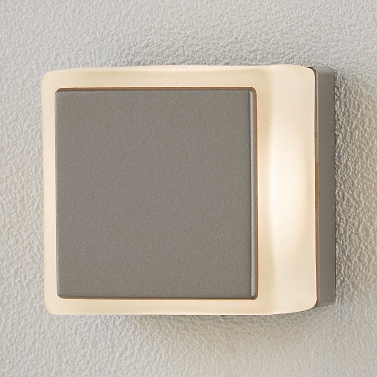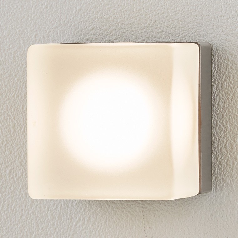プレスガラスの内外両面へ丁寧に施されたブラスト加工によって、壁に美しい光のグラデーションを描きます。お客様を迎える大切な表札を照らすあかりとして、また、アプローチ、ガーデンのアイポイントとして、美しい光を演出します。
