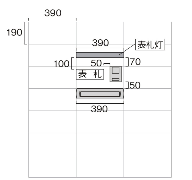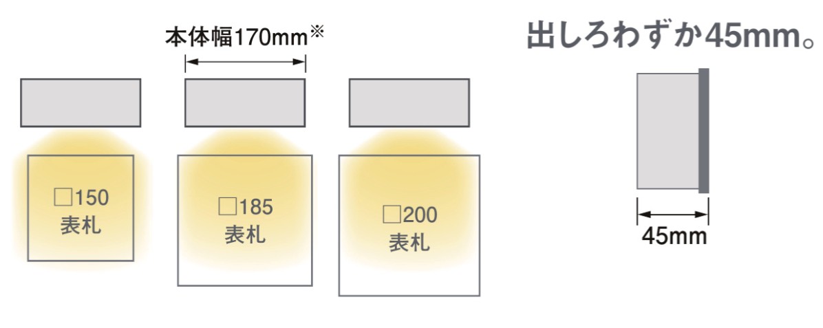 一般的に使われる表札サイズと組み合わせて納まりがよい器具幅。