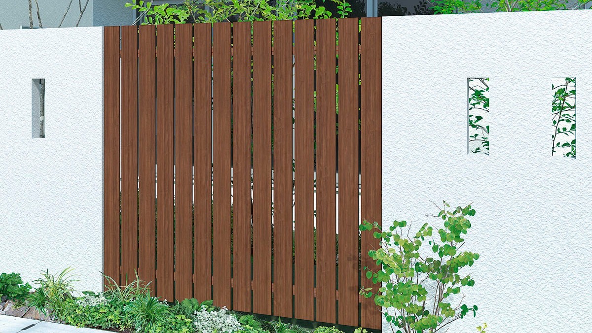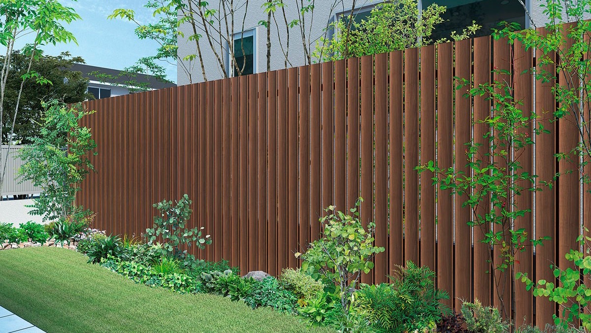 フェンス 外構 モダン  おしゃれ エクステリア 愛知・名古屋の外構専門店パートナーホームのエクステリア 製品一覧 Dスクリーン リアル木調平板 柿渋|パートナーホーム