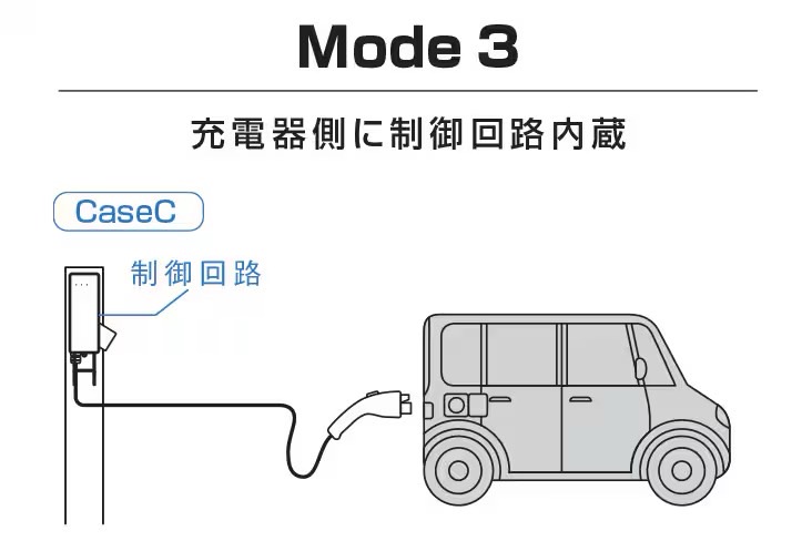 普通充電のモードは、充電制御方式によってMode1〜3に分かれます。(国際規格IEC:61851-1)